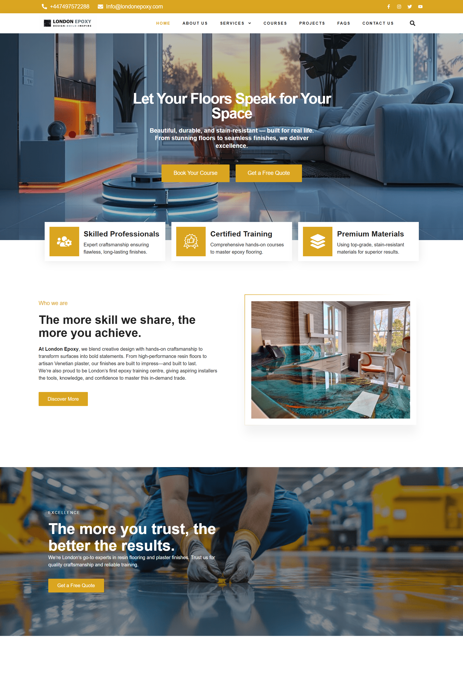 A professional website for London Epoxy, showcasing their premium epoxy flooring services across residential, commercial, and industrial sectors. Our goal was to create a clean, responsive, and user-focused platform that reflects their craftsmanship and service excellence.